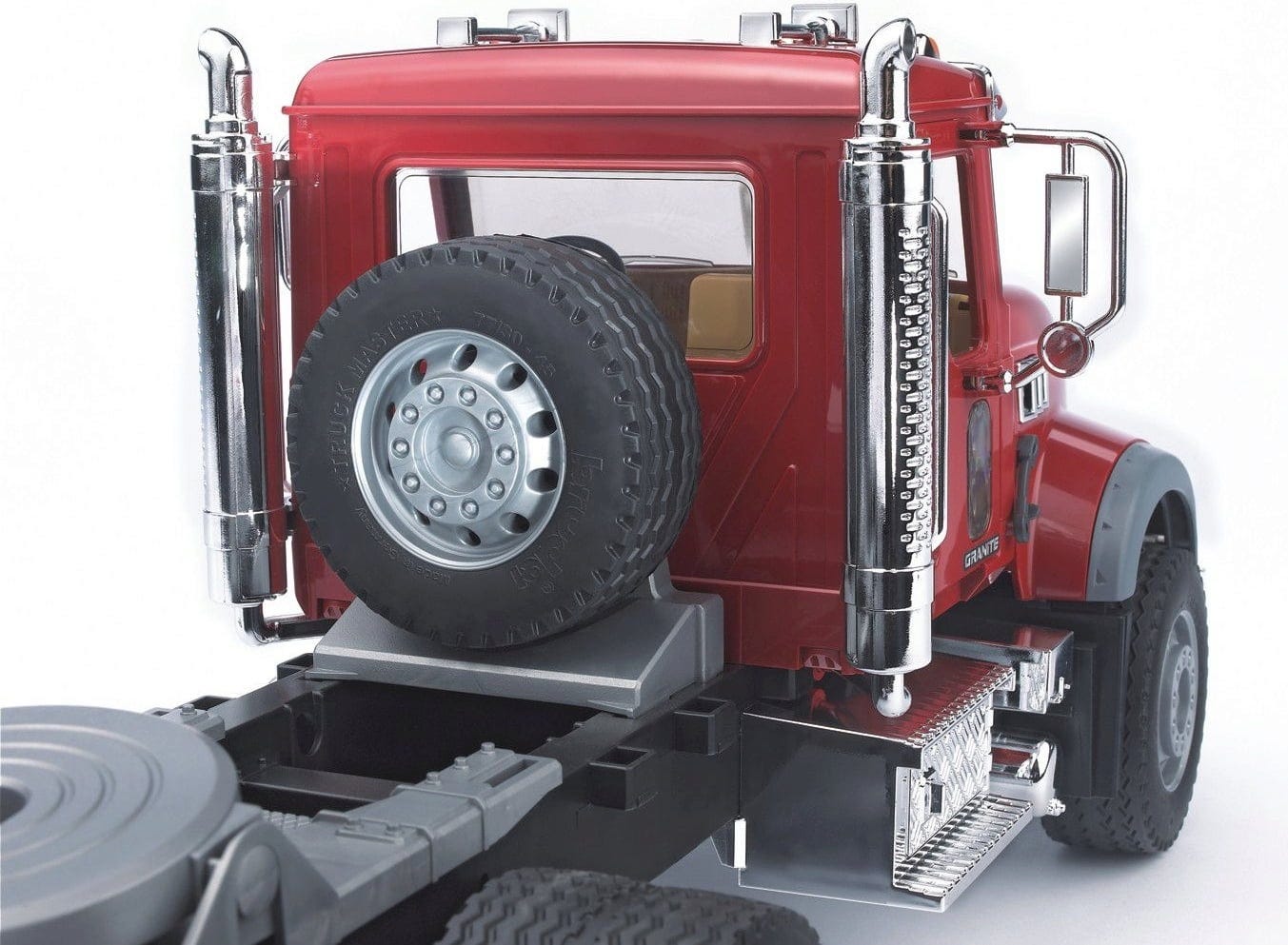 This impressive set combines the legendary American power of the MACK Granite truck with a versatile JCB 4CX excavator loader on a low-loader. The detailed design and many realistic functions ensure a first-class playing experience.