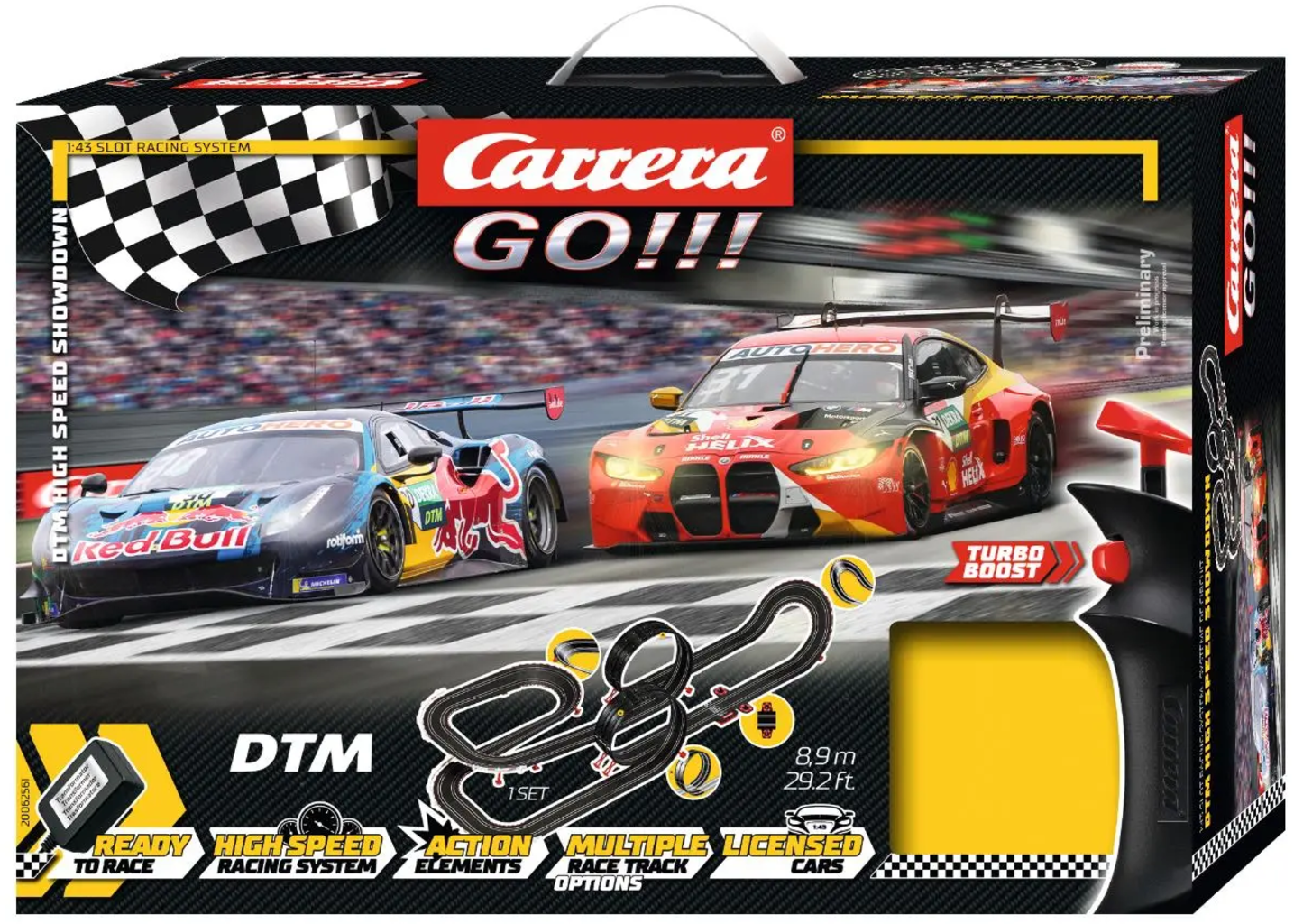 On your marks, get set, go! In the Carrera GO!!! - DTM High Speed Showdown, BMW and Ferrari fight a fierce duel for victory. 2 spectacular loops, steep bends and a fly-over provide thrills on the almost 9-metre long high-speed track. Who will be the champion?
