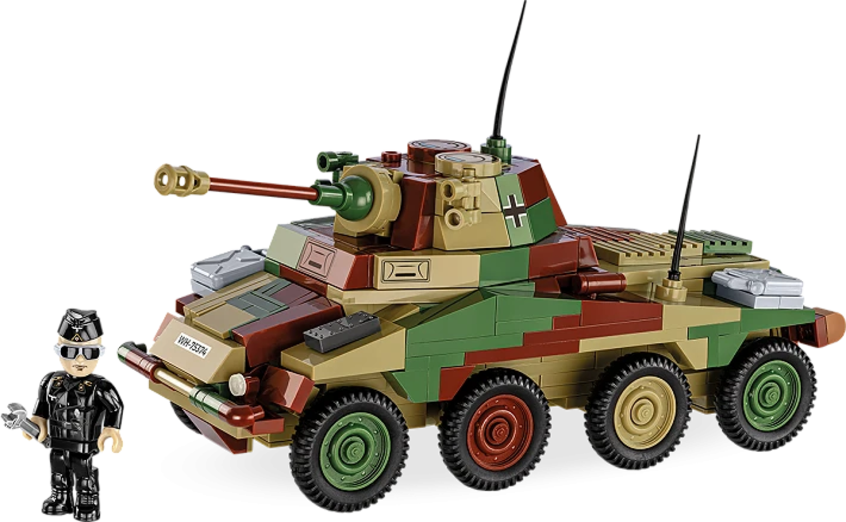 The included figure of the crew member fits perfectly in the hatch and brings your historical adventure to life. Thanks to the high-quality stone printing and sturdy construction, your 20 cm long Puma will stay in top shape even during fast-paced missions in the nursery. Put the 470 pieces together and discover why this wheeled armoured vehicle is a real legend!