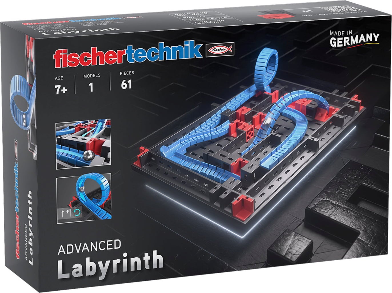 The fischertechnik ADVANCED Labyrinth requires team spirit and a steady hand. Build your own maze and then try to manoeuvre the ball safely through all the corridors - without getting lost! Whether alone or together: this set provides exciting, tricky challenges and lots of fun.