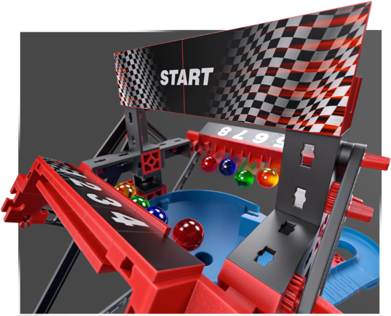 With the Marble Competition marble run, every race is a highlight! Children can create their own races, race balls and experience exciting turns, speed passages and action-packed starts. The wide flex profiles ensure plenty of speed, and thanks to the robust components, there are no limits to creativity. Perfect for young racing pros who love fun, excitement and technology.