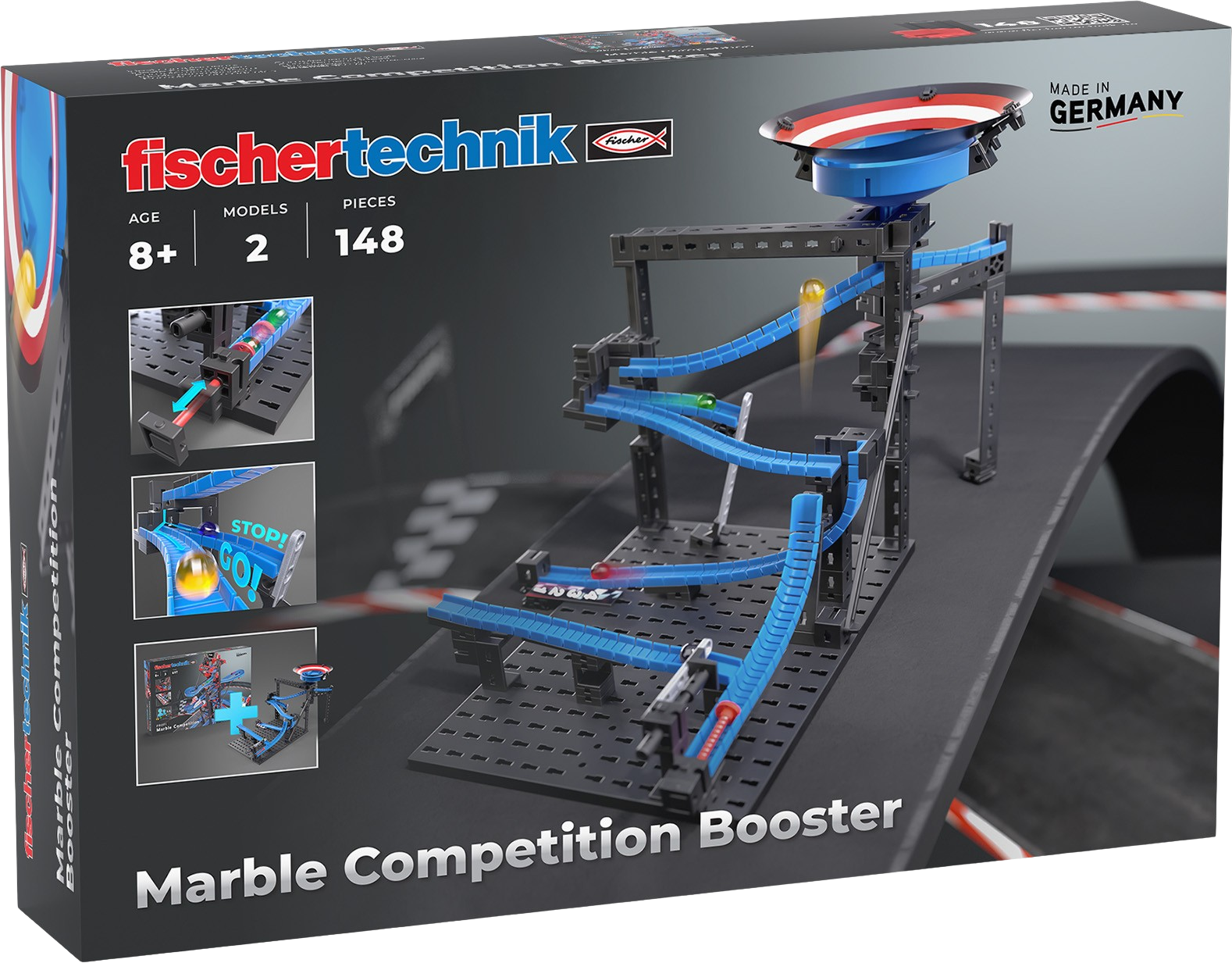 The Profi Marble Competition Booster makes every marble race even more exciting. Skilfully steer the marbles through chicanes and dead ends and find out who wins the race. Whether as a stand-alone game or as an extension to your Marble Competition track, fun, excitement and competitions are guaranteed.