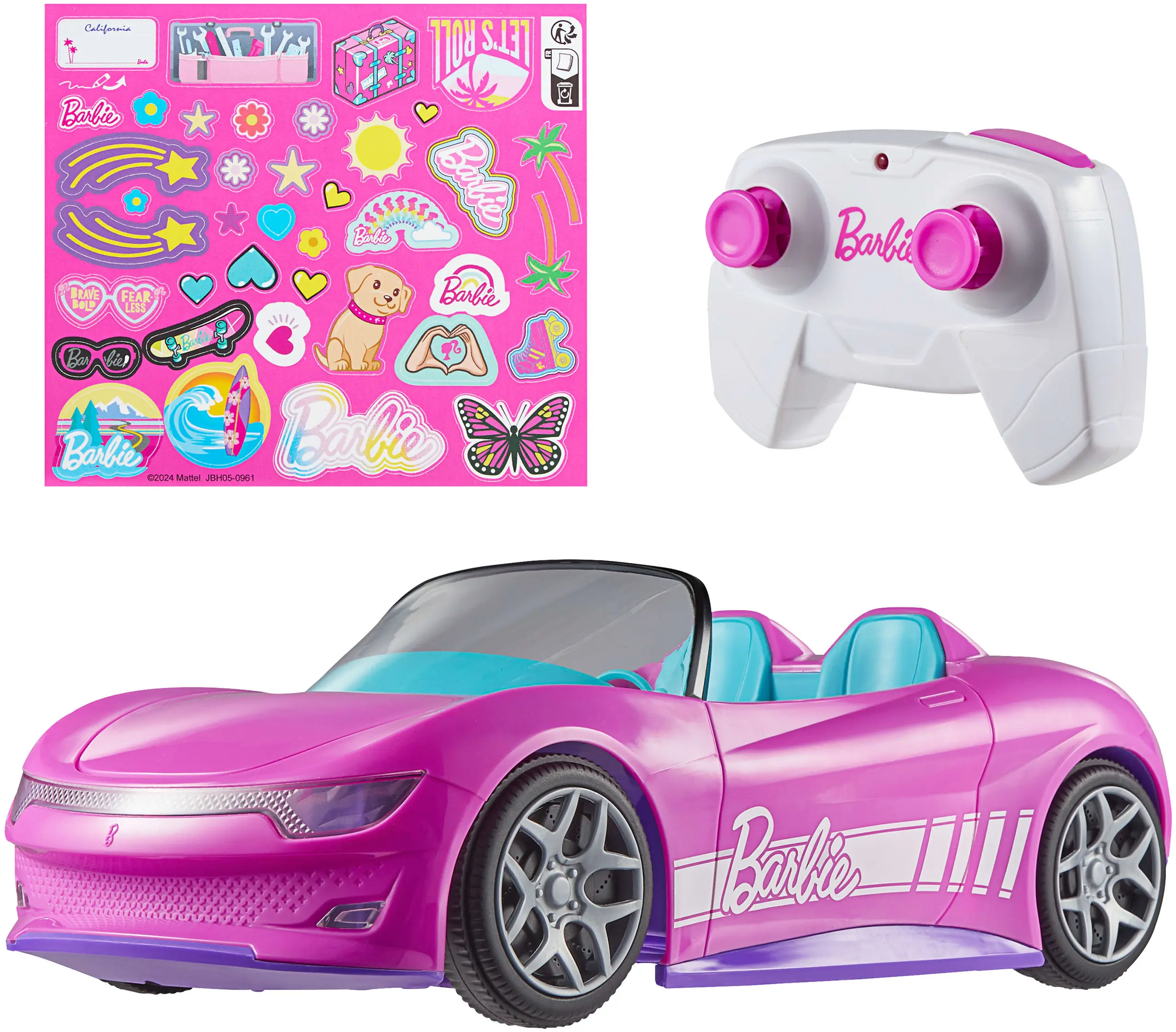1 RC Barbie convertible, 1 remote control, 1 sticker sheet