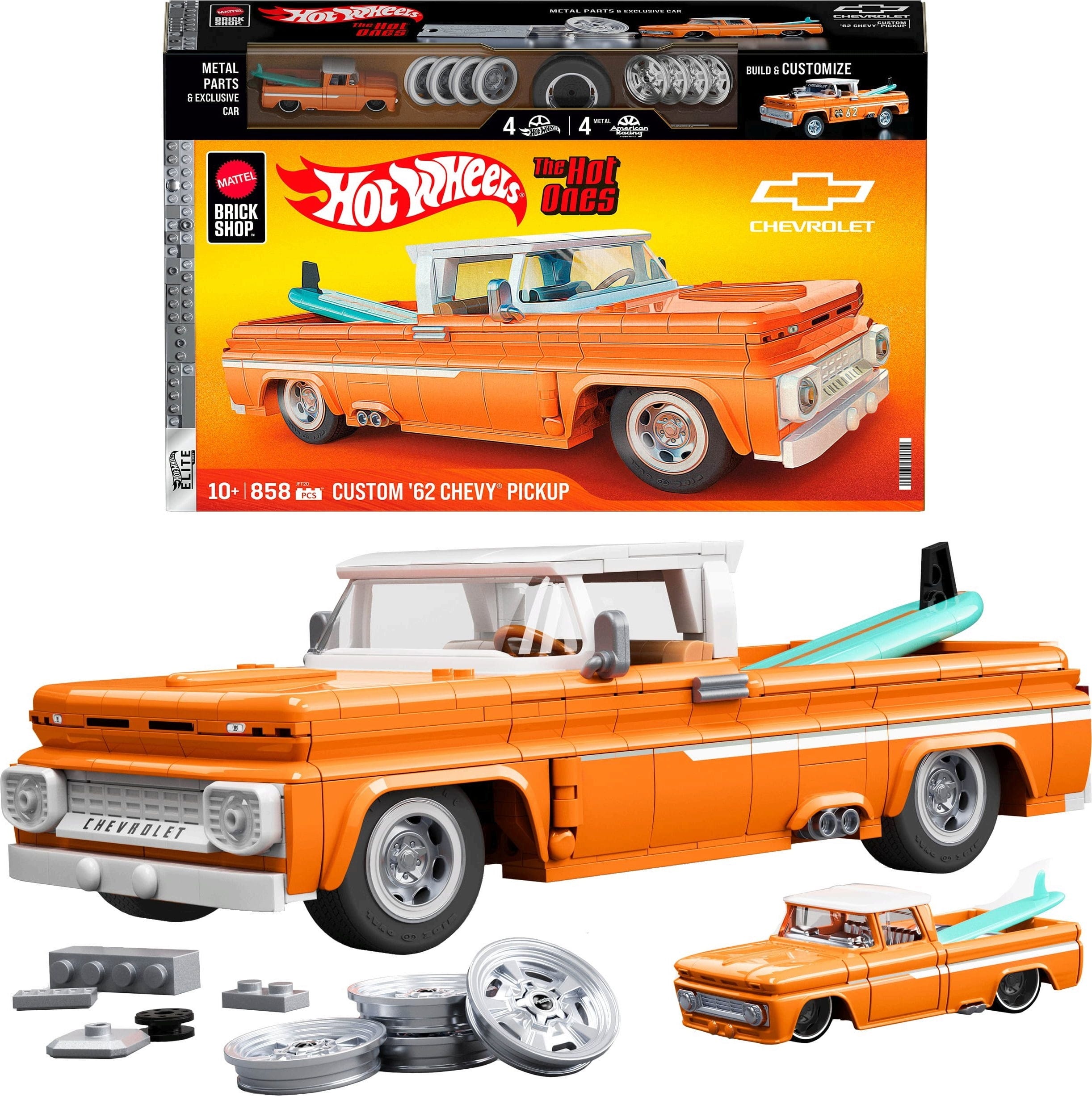 Are you ready to travel back to 1962? With the Custom '62 Chevy Pickup from the Brick Shop Elite series, you can build your own classic American truck in 1:16 scale! You have the freedom to choose how your model will look - whether you prefer an exposed engine for a raw power aesthetic or elegant metal hubcaps, the choice is yours.