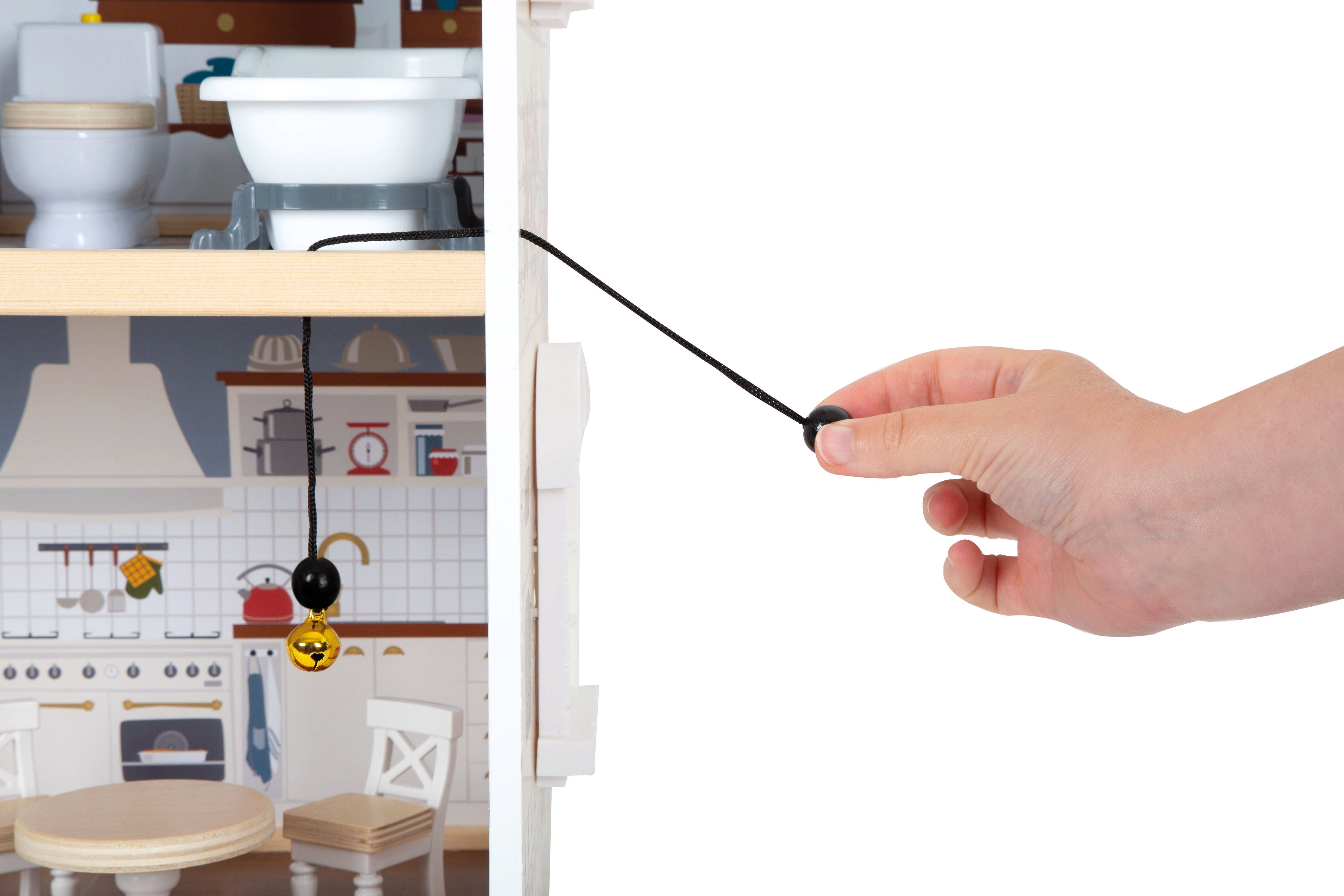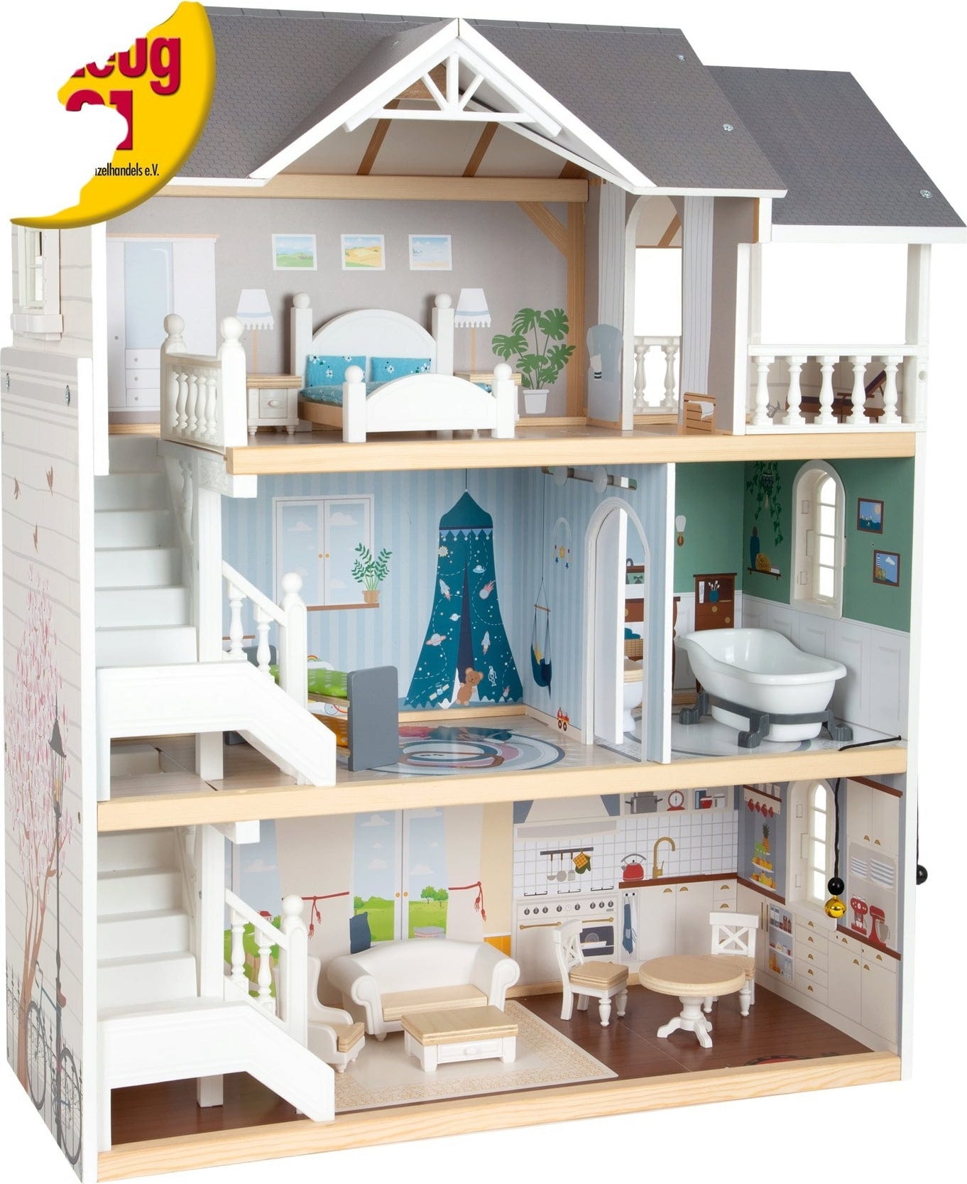 This lovingly designed doll's house invites children to enjoy hours of imaginative play. With its detailed furniture, stairs, balcony and real play accessories, every play situation comes to life. The open front allows easy play, even with friends or siblings, and makes the doll's house a real highlight in the nursery.