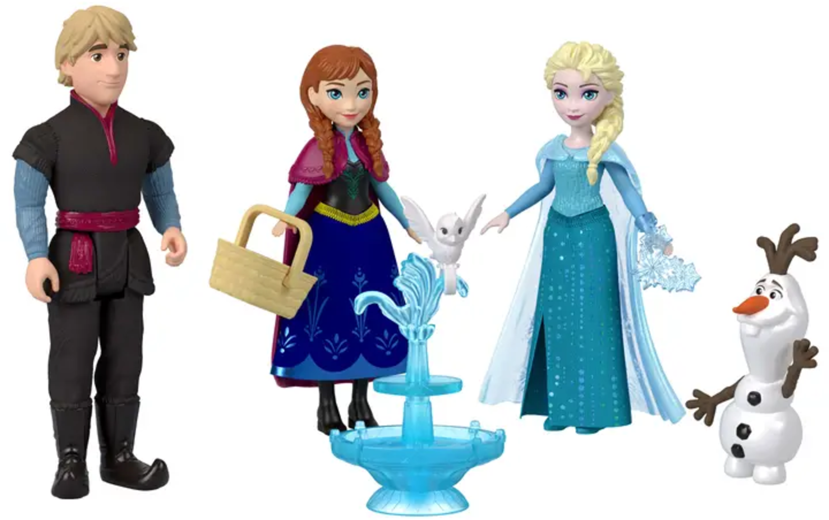 - Figures: Anna, Elsa, Kristoff, Olaf