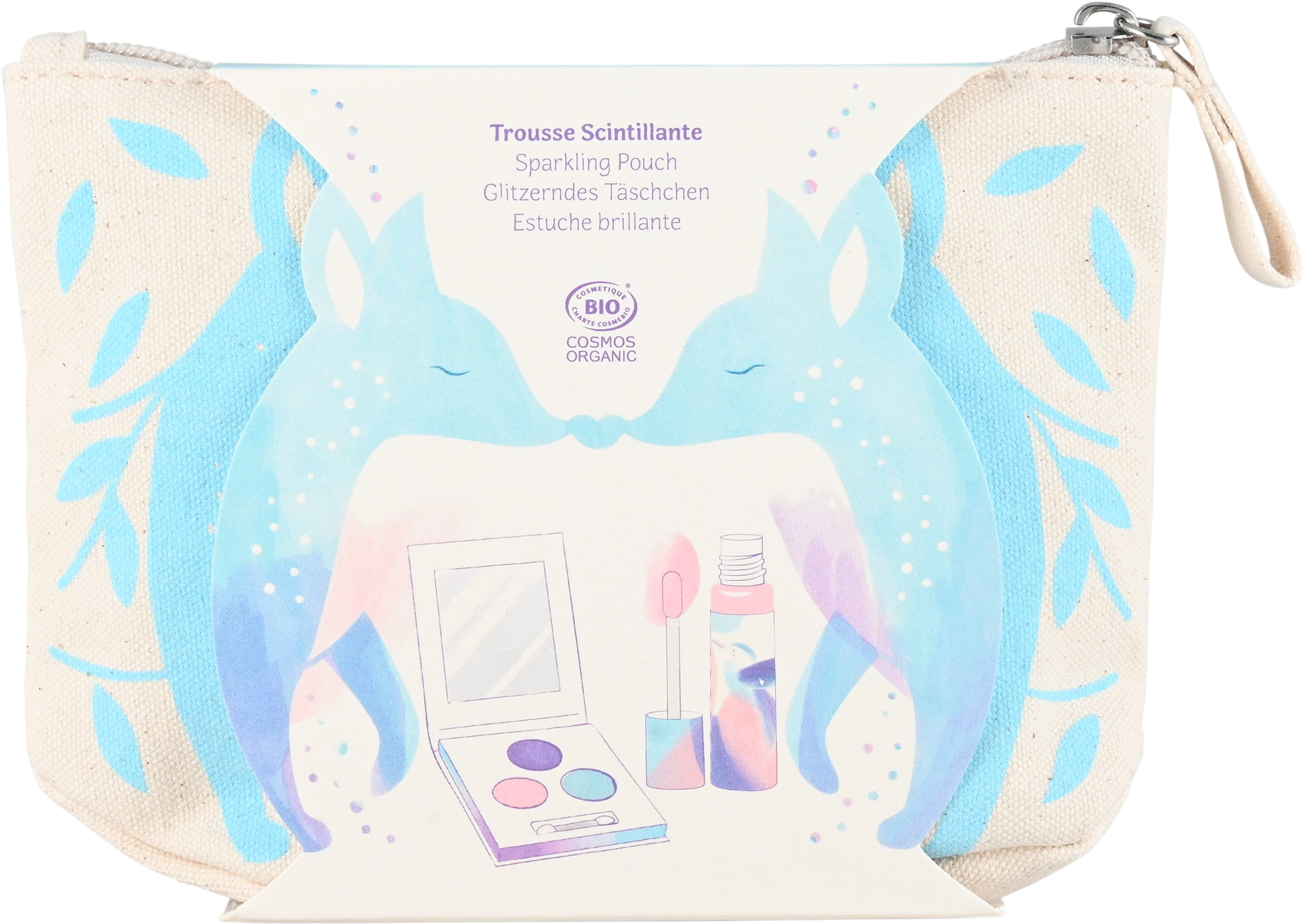 This pretty bag contains all the make-up components that a child's heart desires! The set includes an eyeshadow palette with 3 luminous, pearly shades and a glittering peach-scented lip gloss. All products are gentle on children's skin, hypoallergenic and easy to wash off. Perfect as a gift.