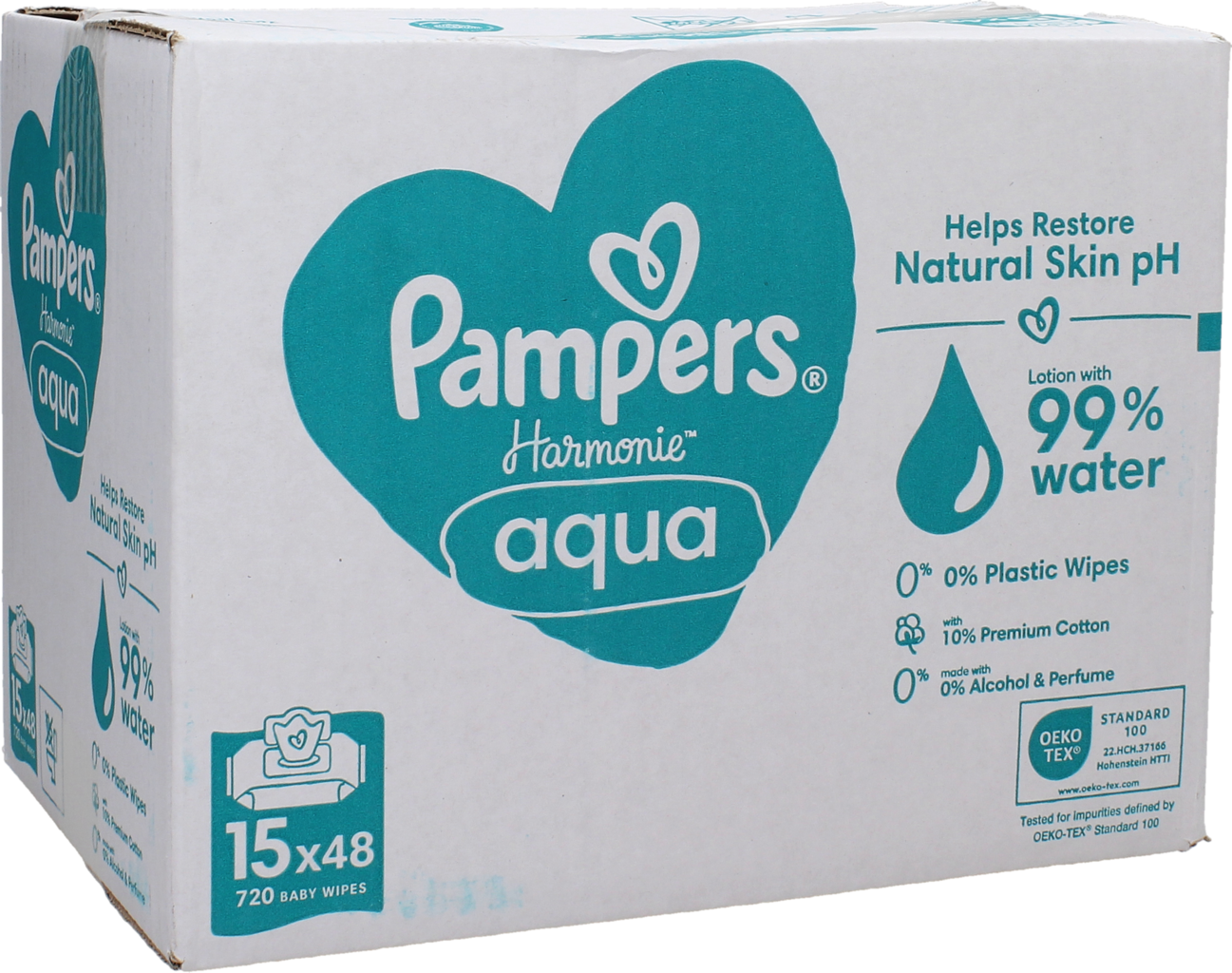 Pampers Harmonie Aqua Baby Wipes , 15 x 48 (720 items)