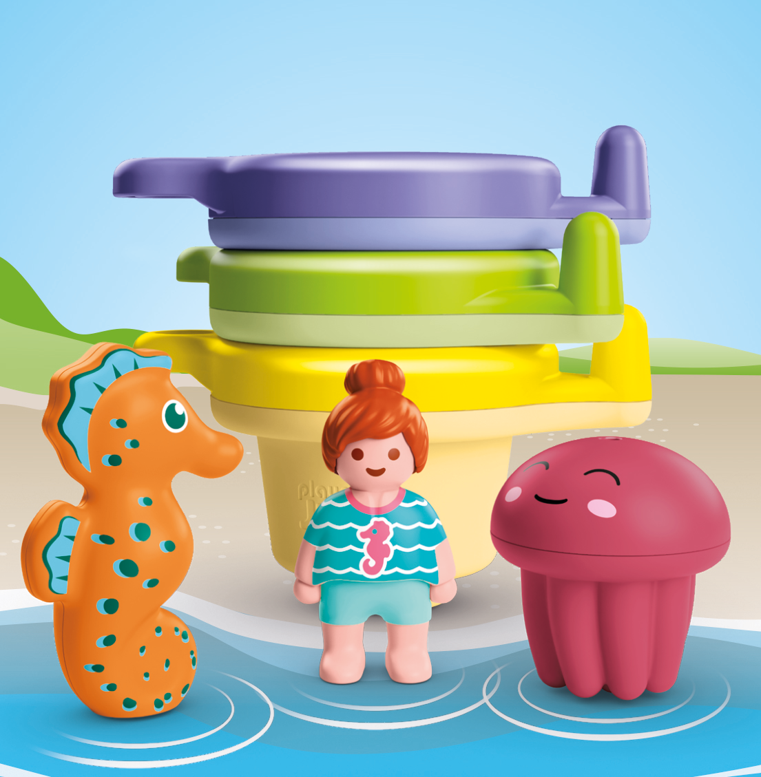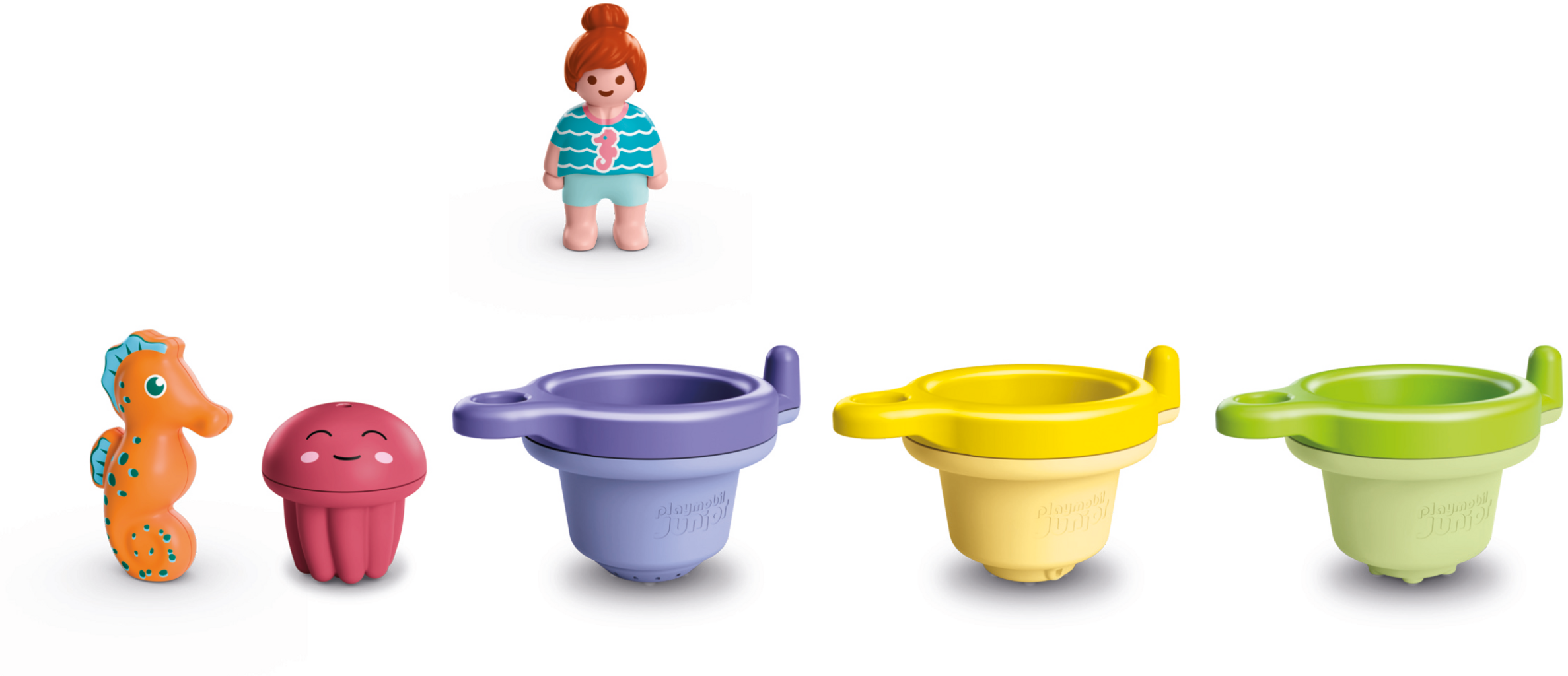 Three cheerful floating cups bring lots of water fun into the bath. The seahorse and baby jellyfish whizz along happily and turn playing into a little water adventure. Stacking cups, connecting them or simply splashing water - bath time will fly by in no time.