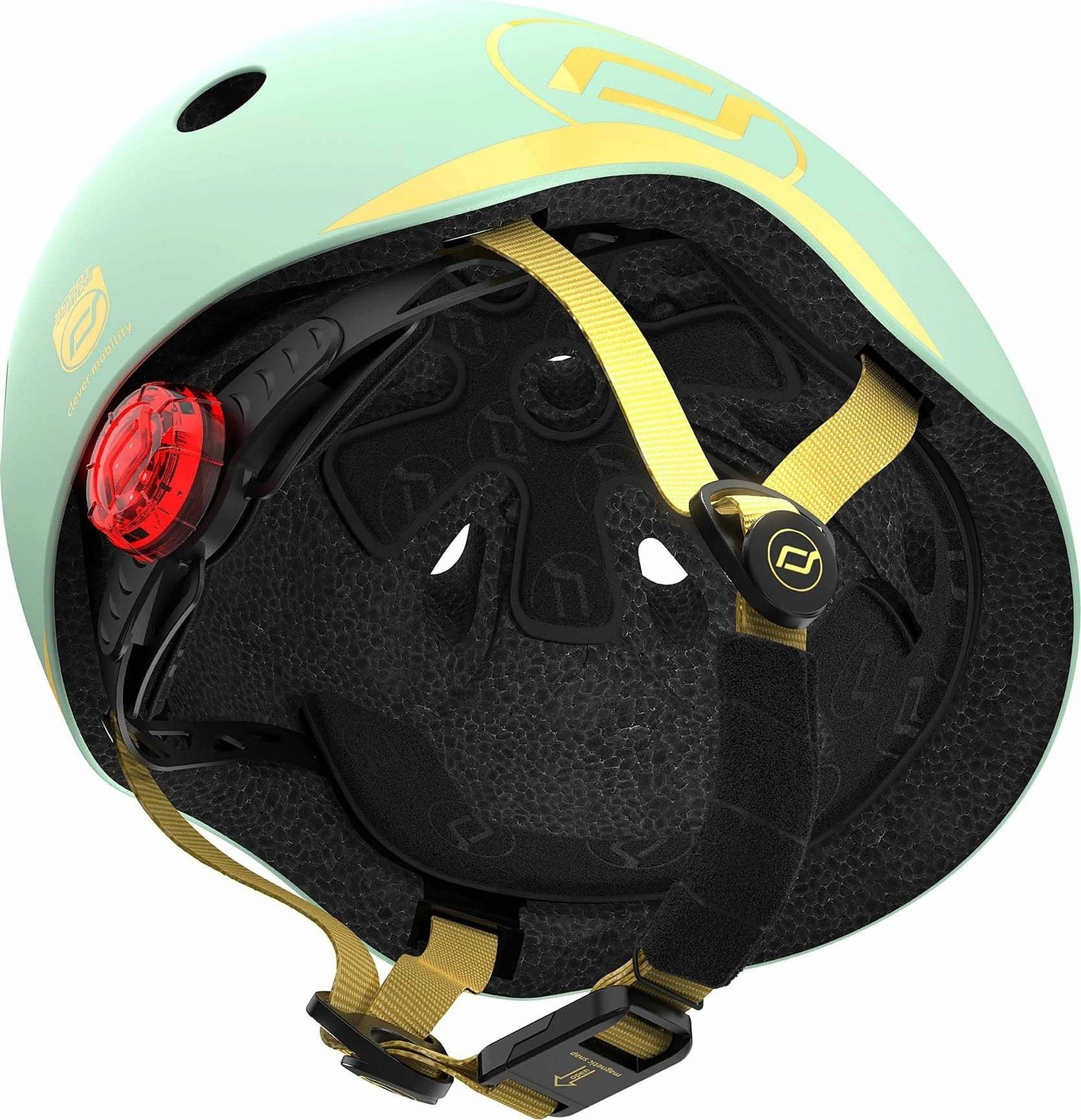 A highly visible LED light on the back of the helmet ensures optimum visibility. The soft padding is breathable and washable.