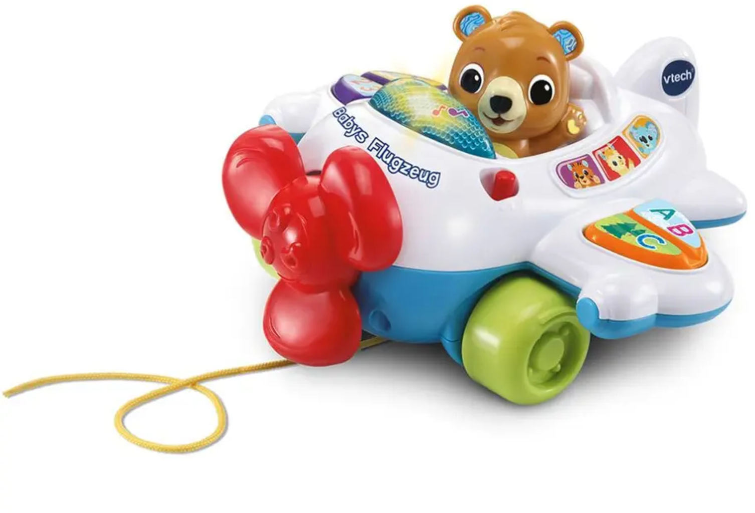 With Baby's aeroplane, little ones can experience exciting flying adventures! Music, funny phrases and melodies accompany playtime, while the propeller, wheels and movement sensor provide interactive fun. Perfect for children aged 9 months and over who want to playfully discover their first numbers, letters and sounds.
