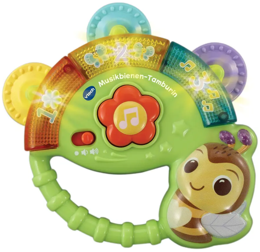 The musical bee tambourine makes shaking, rattling and singing great fun! Motor skills and musical feeling are encouraged in a playful way - perfect for little musicians in the nursery.