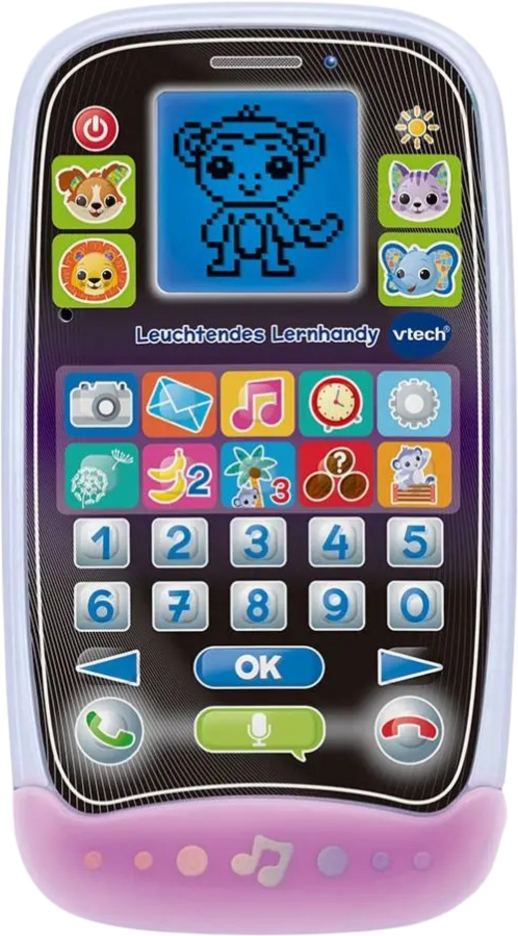 Little explorers can playfully learn numbers, logic and time concepts with the bright learning mobile phone. Call animal friends, send messages and discover fun apps - the perfect travelling companion.