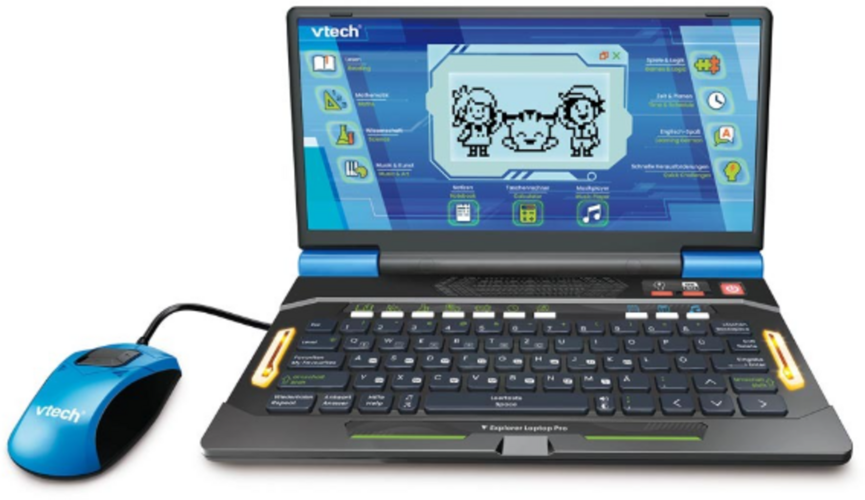 The Explorer Laptop Pro offers children from 6 years of age an interactive learning world full of stimulating games and activities. With 164 educational games in German and English, divided into different subject areas, it naturally encourages reading, math, English and other skills. The LES learning system, the illuminated LCD and the design intended for young children make it a practical companion both at home and on the move.