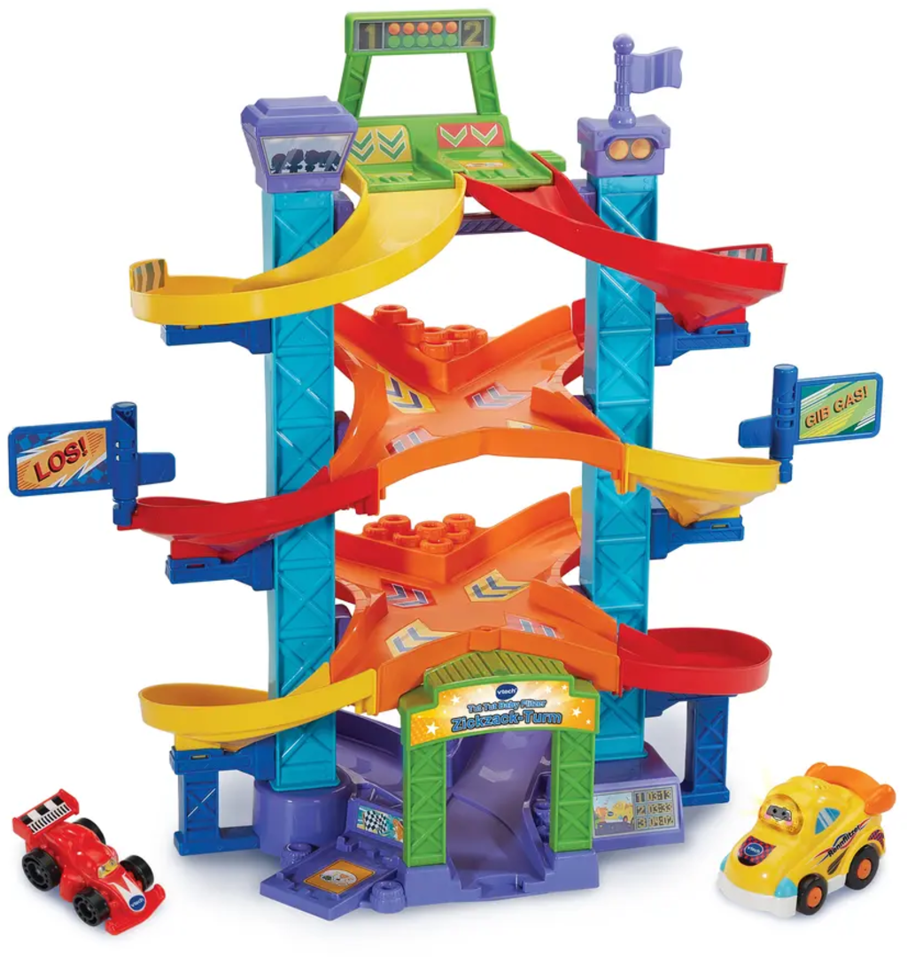 With the Tut Tut Baby Flitzer - Zigzag Tower, little racers can get started right away! The speedsters race along the spiral tracks, trigger songs, sounds and lights and bring lots of action into the nursery. Ideal for children aged 1 to 5 who love fun, music and exciting races!