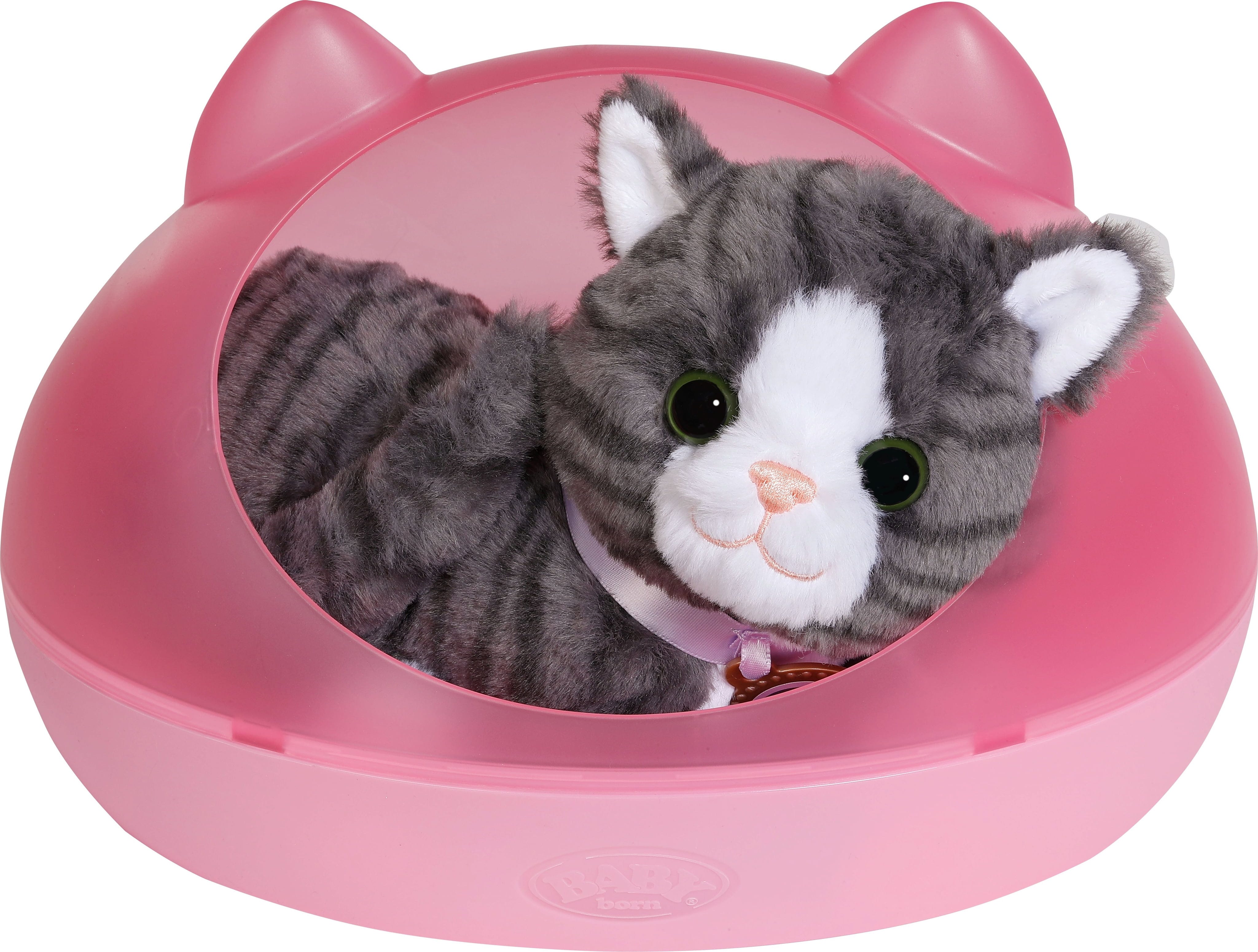 With "My kitten Cookie" from BABY born, a particularly cute playmate moves into the nursery. Thanks to the sound and vibration function, the kitten looks almost real and provides loving role play. Cookie feels completely at home in her cosy basket - perfect for little animal lovers aged 3 and over.